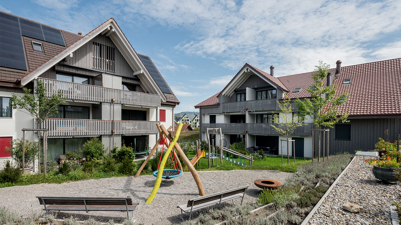 Unmittelbar beim Dorfeingang von Aesch, am Rande der Bauzone, entstanden 2016 auf einer Fläche von über 4’000 m2 fünf moderne und stillvolle Mehrfamilienhäuser. Dazu gehört ein fachmännisch renoviertes Bauernhaus. Das Projekt bietet grosszügige Innenhöfe und eine wunderbare Aussicht auf die Grünflächen.